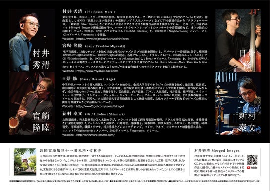 村井秀清を中心に素晴らしいミュージシャンたちが集まったMergedImages。オリジナルCDからの楽曲のみならず村井がTVや映像作品に提供した様々なスタイルの楽曲にも柔軟に対応する高い音楽性がこのグループの特徴。日本各地へツアーなども積極的に行う。