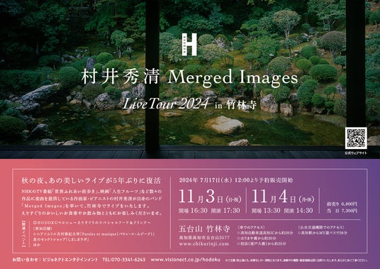 NHKのTV番組「世界ふれあい街歩き」、映画「人生フルーツ」など数々の作品に楽曲を提供している作曲家・ピアニストの村井秀清が自身のバンド「Merged Images」を率いてライブをいたします。