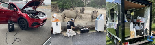 医療においても、安全性や静穏性、取り回しの面からポータブル蓄電池の活躍が見込まれています。コロナ渦でのフリーザの電源確保など、移動が多い場面での電源問題として、ポータブル蓄電池が活躍しました。また、被災地においても当然に医療機器や薬を必要とする方々がいます。入院している患者さんや通院している患者さん、また、予期せぬ災害にみまわれ、屋内・屋外に限らず、負傷者が出てきます。被災時、院内でのバックアップ電源としての活用や、フリーザや医療装置などの医療機器を動かす必要がある際の電源確保として配備しておくことで、緊急時の電源問題を改善することができます。
