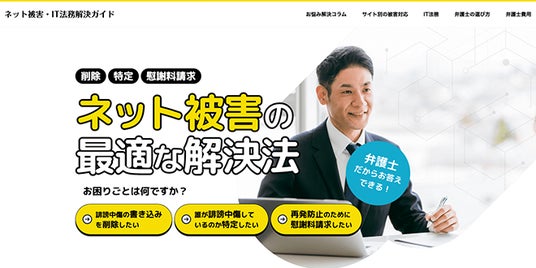 そこで、アトム法律情報株式会社は従来の「ネット削除依頼ナビ」を刷新し、「ネット被害・IT法務解決ガイド」として新たに公開。誹謗中傷、個人情報の晒し、リベンジポルノといった個人のネットトラブルの対処法についての記事を充実させました。弁護士監修で、トラブルにあったときの対処法をわかりやすく紹介しています。