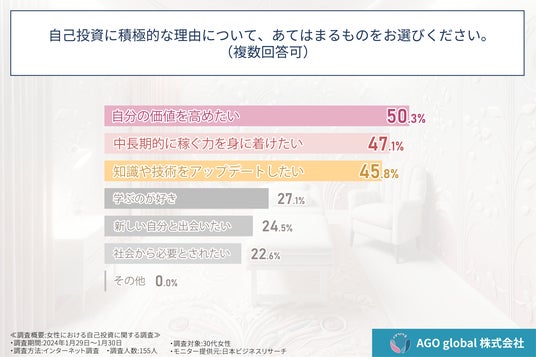 そこで、AGOセラピストスクールは、30代の女性に対し、自己投資についての意識調査を実施しました。