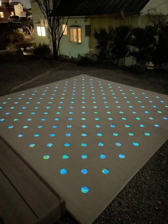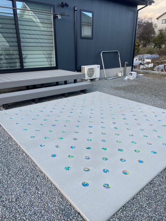 「Dotcon」は、特殊な構造を持つ透水コンクリートパネルで、地面に敷くだけで雨水を自然に地中へと浸透させます。