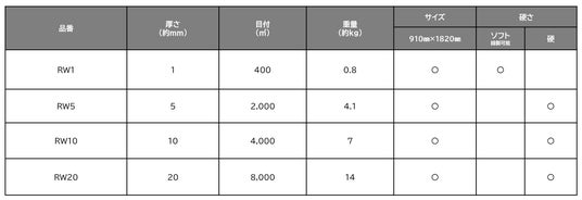 規格材の展開は約1mm、5mm、10mm、20mmの4種類