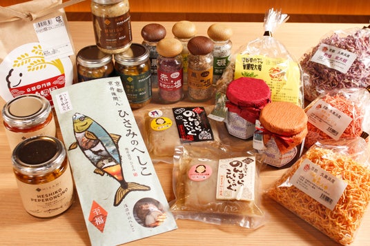 当施設は2階レストランで食べた食材を1階で購入できる直売所併設型になっています。1階『FOOD BASE CAMP』では4/24(水)~5/21(火)の期間中、京丹後フェアを開催します。有機JAS認定を取得しているエチエ農産さんの野菜や、大正時代からの製法を守り続けている和商店さんの希少なこんにゃく、そして先ほど紹介したひさみのへしこや上世屋獣肉店さんのジビエなど、京丹後からバス便で届いたこだわり食材を販売します。2階レストラン『地産美食の小皿料理』のディナーでは、これらの食材を使った小皿料理をご提供。当店でのお食事やお買い物を通して、ぜひお気に入りの一品を見つけてください。
