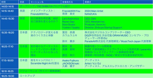 - URL:https://shibuya-o.com/east/schedule/dig-shibuya-2024/