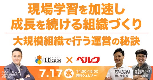 「学び」をデザインし個人と組織の成長に貢献することをミッションとし、AIを活用したデジタル学習プラットフォーム『UMU(ユーム)』を提供する株式会社LDcube(本社:東京都千代田区、代表取締役:新井澄人)は7/17(水)14時より、社内の教育に携わる方々に向けたイベント「株式会社ベルク登壇|現場学習を加速し、成長を続ける組織づくり~大規模組織で行う運営の秘訣」を開催いたします。