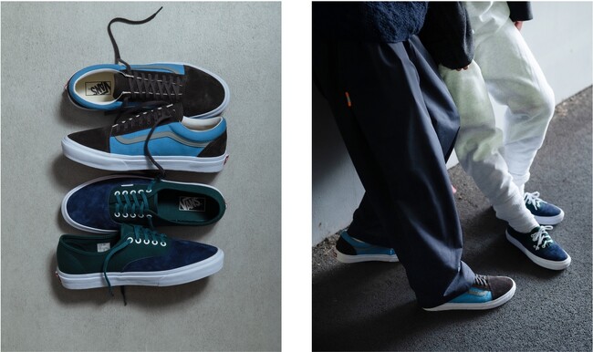 「PROPS STORE」はスタッフ自らがアメリカに出向いて目利きしたアイテムが店頭に並び、世代や性別を問わず愛される原宿のインポートショップ です。鮮やかなトーンのブルーのキャンバスにシックなブラウンのスエードを合わせたOLD SKOOL(オールドスクール)と、グリーンキャンバス&ネイビースエードのAUTHENTIC(オーセンティック)の2モデルがラインアップ。