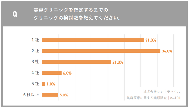 Q.美容クリニックを確定するまでのクリニックの検討数を教えてください。(n=100)