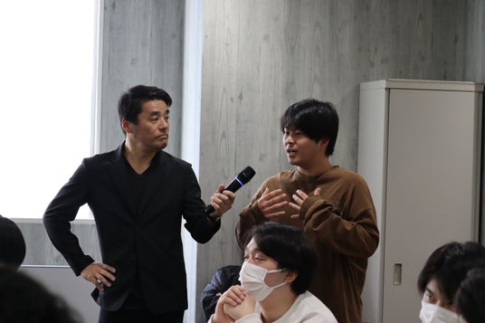 講演開始直後の学生たちは、これまでの教室経験と同様に周りの様子を見ているかのような状況でしたが、大西さんの問い掛けに対し積極的に発言する学生が現れ始め、次第に手を挙げて自分の考えを次々に発するようになりました。