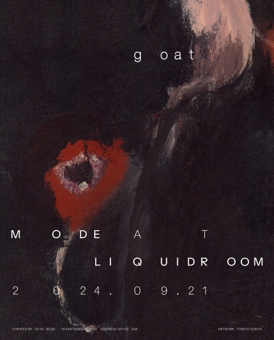 goat(ゴート/JP)2013年に日野浩志郎を中心に結成したグループ。元はギター、サックス、ベース、ドラムの4人編成であるが、現在は楽曲によって楽器を持ち替えていく5人編成で活動している。極力楽器の持つ音階を無視し、発音させる際に生じるノイズ、ミュート音などから楽曲を制作。執拗な反復から生まれるトランスと疲労、12音階を外したハーモニクス音からなるメロディのようなものは都会(クラブ)的であると同時に民族的。2023年には3rd albumとなる「Joy in Fear」をNAKIDから発表。