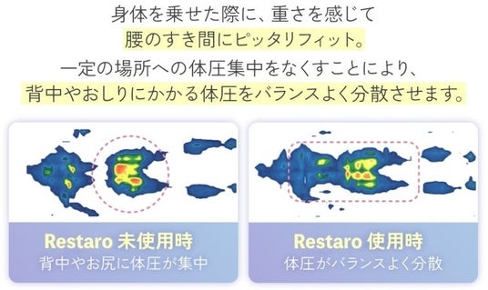 今回、Makuakeにて応援購入を募集するのは、体圧をしっかり分散することで寝返りの回数が減らせるようになる腰枕【Restaro】。