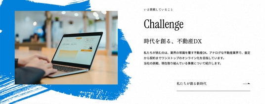 「Philosophy(理念)」は代表メッセージや企業理念、「Challange」は当社が事業を展開する不動産市場の可能性や目下取り組んでいる課題について、「Culture」は、多様な人財の成長促進を軸とした当社独自の施策や、成長実績を数字で表した「数字でわかるパートナーズ」、新卒特別制度(新卒社員を対象とした特別制度)、人事第制度、キャリアパスなどを紹介しています。