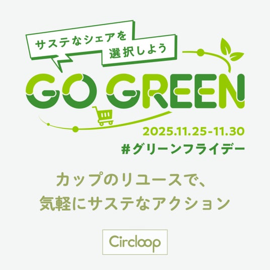 「サステナビリティをあたりまえに」をミッションにリユーザブルカップサービスを展開する株式会社Circloop(本社:東京都港区、代表者:中村 周太)は、欧米を中心に広がるサステナブルな消費を促す「グリーンフライデー」(2025年11月28日)に合わせ、一般社団法人シェアリングエコノミー協会が主導する「GO GREENプロジェクト」に参画することをお知らせいたします。