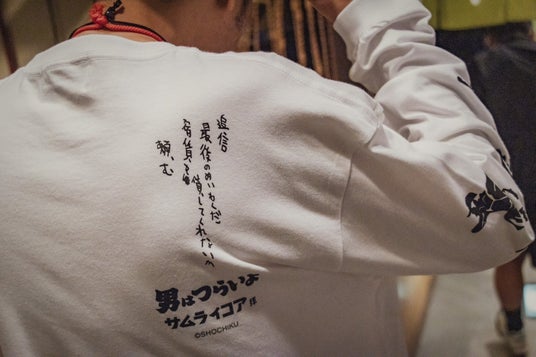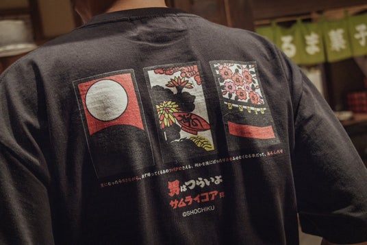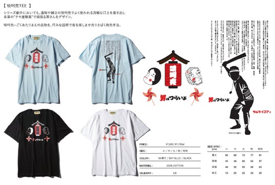 今回のコレクションでは、物語の印象的なエピソードや、寅さんといえば!といった象徴的な台詞やモチーフなどをサムライコア独自のグラフィックやマテリアルで再構築し、表現しています。