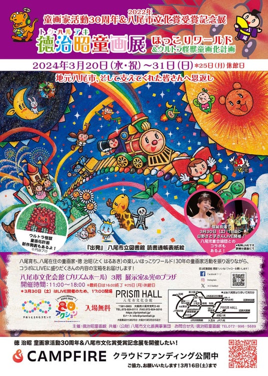 プリズムウェブサイトチケットhttps://prismhall.jp/ *3月27日まで童画家 徳 治昭 活動30周年&八尾市文化賞受賞記念展開催については