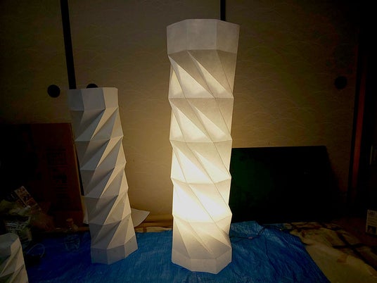 『変化するアート』として発表します。ディスプレイコラボでは和紙の灯りの作家、松本アキムさんから制作風景の写真が届きました。