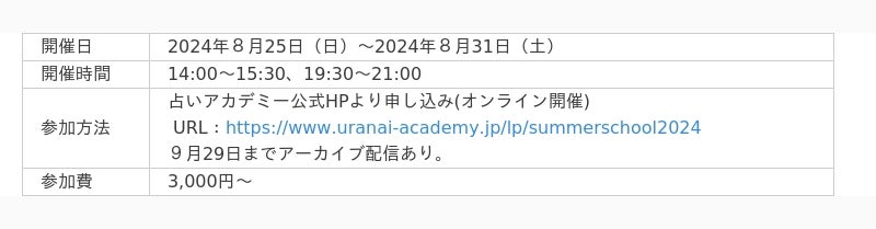 占い夏期講習2024 特設サイト:https://www.uranai-academy.jp/lp/summerschool2024