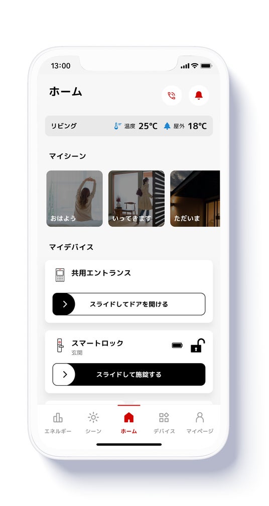 ・「おはよう」「行ってきます」といった「シーン」機能や、時間や位置情報などを実行条件とする「自動モード」の活用で、複数のIoT機器をまとめて動かし、設定どおりの住空間の制御が可能