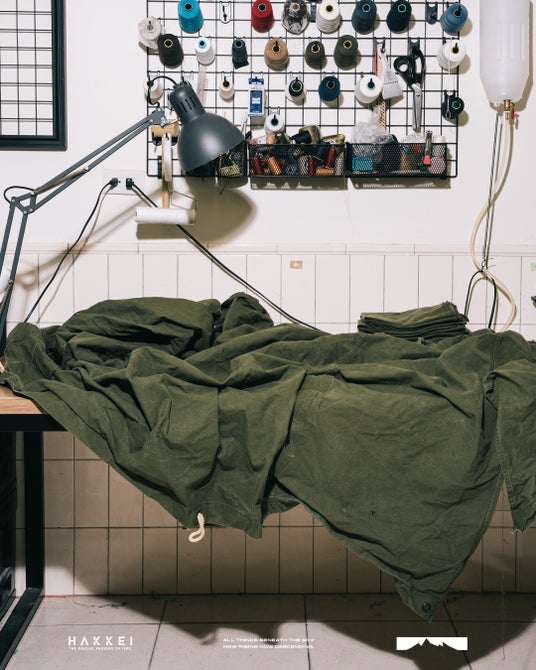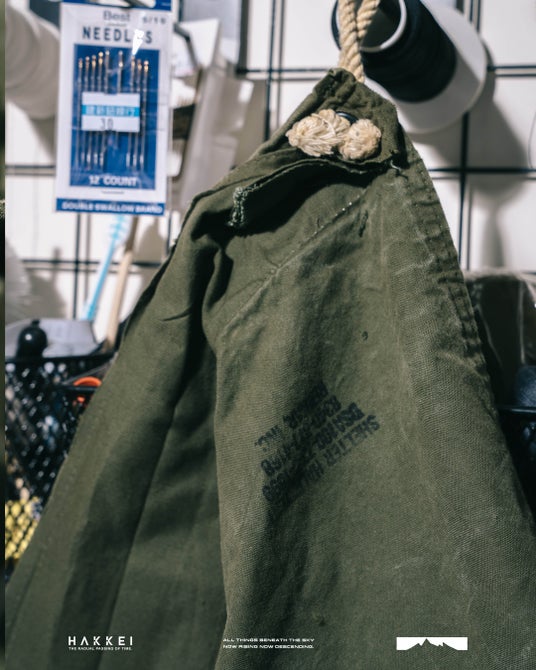 今回のポップアップショップでは、バイヤーがアメリカで見つけたビンテージテント生地を解体して作られた別注アイテムも販売する。
