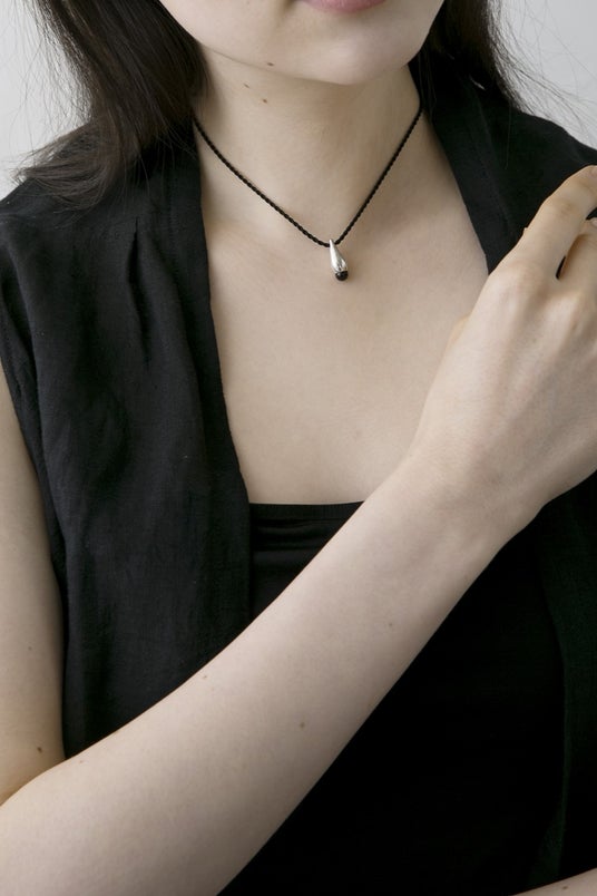 「身に付けて持ち運べるアート」をコンセプトにしたネックレスは、ニュアンスのあるフォルムと天然石が魅力になっています。
