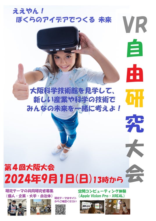 一般社団法人子ども・学生VR自由大会組織委員会(本社:東京都千代田区、代表理事:横松繁)は、来たる9月1日(日)に大阪科学技術館にて開催される「子ども・学生VR自由研究大会 第4回大阪大会」に向けて、共同研究者を募集いたします。
