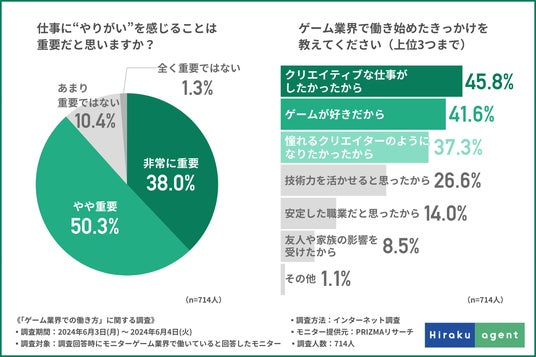ここまでの調査で、ゲーム業界で働き始めたきっかけが明らかになり、やりがいが感じられることを重視している方が多いことが分かりました。