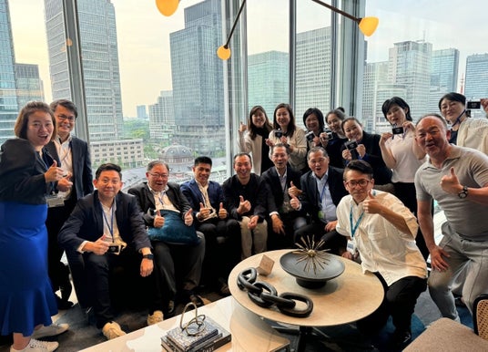 ▲東京のJustCoオフィスを訪問した際の集合写真。JustCoは日本での事業拡大に成功しているシンガポール発のシェアオフィス。