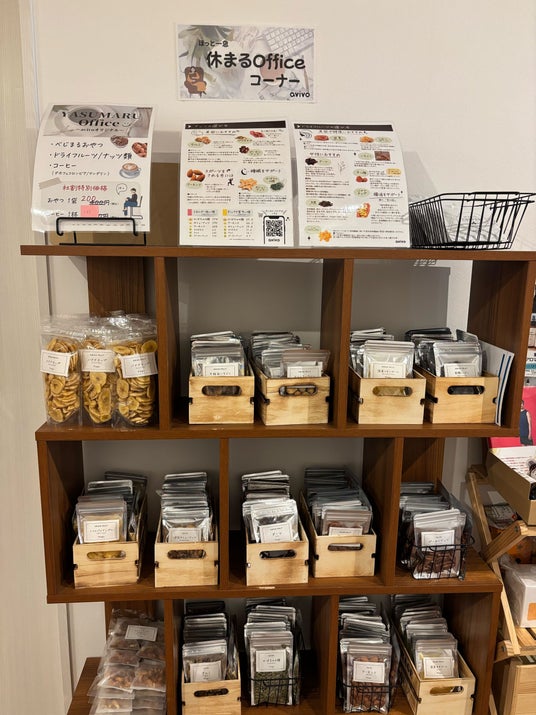 ・健康おやつ、デカフェコーヒーコーナーの設置、会社補助による販売。