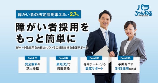 障害者雇用にある採用と就労の課題を捉え、求職者と企業の相性に重きを置いた新しいマッチング方式を採用しており、YouTubeやTikTok、XなどSNS特化型の宣伝・集客により月間150万PV、800社以上の障害者雇用求人を掲載しています。