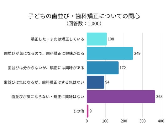 回答の内、「子どもの矯正に興味がある」と答えたのが42.1%、