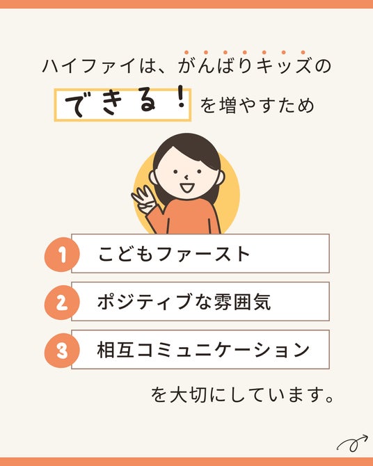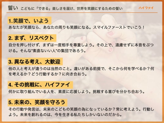 ハイファイが大切にしていることハイファイ(High Five)とは英語で”ハイタッチ”のこと。こどもの”やりたい”を見つけ”できる”に変えるため、コミュニティを運営しています。