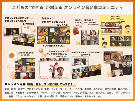 レッスン中に大切にしていること全ては参加するこどものため。こどもたちが楽しみながら学び成長できるようレッスン運営をしております。オンラインが初めてのお子様もお気軽に参加いただけます。