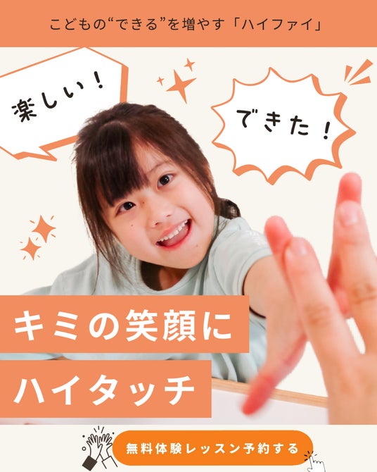 「ハイファイ」なら、送迎不要のオンライン、月額定額制で費用も安心、40種類の習い事からお好きなものを受け放題、子どもの“できた”の笑顔にハイタッチするポジティブな相互コミュニケーションで、0~9歳のお子様が楽しく学べる習い事サービスです。