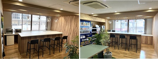 富山本社には今まで休憩スペースがなく、昼食などは外食やコンビニ弁当を購入し、自分のデスクで食事をとっていました。休憩スペースの設置や、置型社食・オフィスコンビニを設置することで、快適な職場環境を作りました。