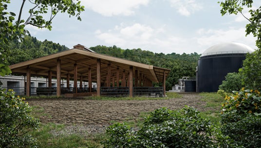 老朽化からその機能を失った牛舎を修復・刷新して水耕栽培農場とし、前述の発電事業で得られる電力やその副産物であるバイオマス由来の液肥を活用することでサーキュラーエコノミーを体現していきます。