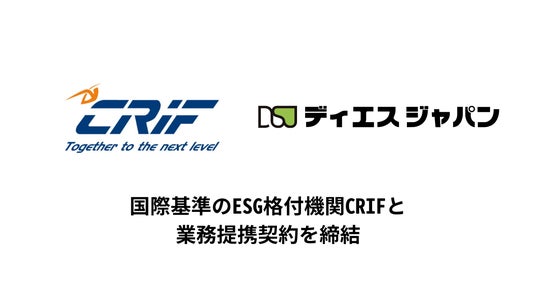 株式会社ディエスジャパン(本社:大阪府東大阪市、代表取締役社長:北條陽子 以下「ディエスジャパン」)は、このたび世界40カ国以上で国際基準のESG評価サービスを展開するCRIF S.p.A(本社:イタリア ボローニャ、会長兼CEO:カルロ・ゲラルディ)の日本法人CRIF Japan株式会社(本社:東京都千代田区、代表取締役:ビンチェンツォ・レスタ、以下「CRIF」)と業務提携したことをお知らせいたします。
