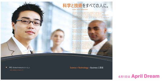 当社は、4月1日を夢を発信する日にしようとするApril Dreamに賛同しています。このプレスリリースは「HGグローバルインダストリーズ」の夢です。