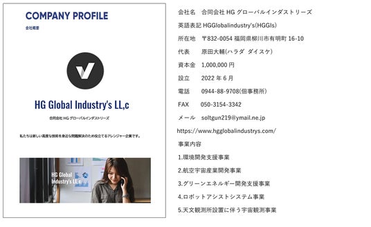福岡県柳川市に拠点を置き宇宙開発を行うHGグローバルインダストリーズ(総合科学研究所)は、誰でもが宇宙に挑める環境と輸送機を開発しています。今まで特別な宇宙産業分野に誰でもが挑戦でき喰い扶持(くいぶち)としてまた、家業として挑める環境といつでも宇宙へ飛ぶことができる輸送機の開発を通じ有明海沿岸地域の産業クラスターの創出を行っています。