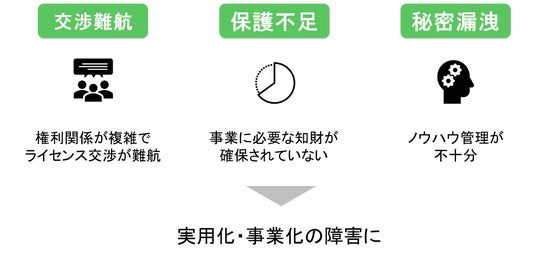 特に、国プロの研究成果は、企業による実用化、事業化等を通じて社会で活用が期待されますが、知財マネジメントがうまくできていないと、こんなトラブルが起きてしまうかもしれません。