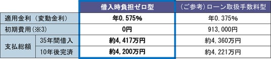- - 借入時負担ゼロ型は、住宅ローンのお借入方法の一つとして新たに取扱開始するものであり、従来の住宅ローンと異なり、お借入時にかかる保証会社の事務手数料やローン取扱手数料等が一切かからず、金利のみをお支払いいただくシンプルな設計です。