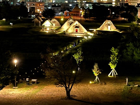 夜は真っ暗な登呂遺跡ですが、毎年秋になると期間限定でライトアップされます。幻想的にライトアップされた登呂遺跡は、写真映え間違いなしです。また、登呂博物館では土器を使ったあかりの展示が飾られる「ナイトミュージアム2024」も開催されます。