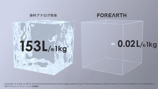 FOREARTHは、生地の印刷時に水の使用量をほぼゼロにまで減らすことができるため、