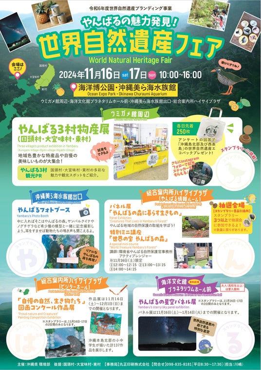 沖縄県では、世界自然遺産とその登録地域であるやんばる3村(国頭村、大宜味村、東村)の魅力を発信することを目的に「世界自然遺産フェア」を開催します。