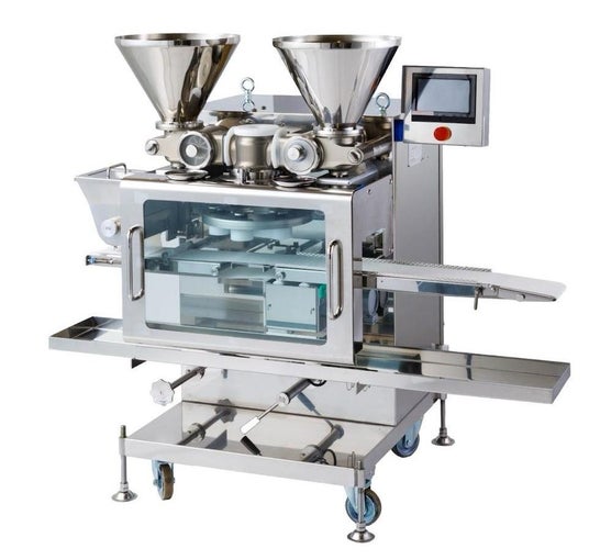 スーパー包あん成形機ロボセブンシリーズ和洋菓子、惣菜、冷凍食品など幅広い製品に対応した多機能包あん機。生産能力は最大14,400個/時で、小規模から大量生産まで柔軟に対応可能。デモ実演あり!