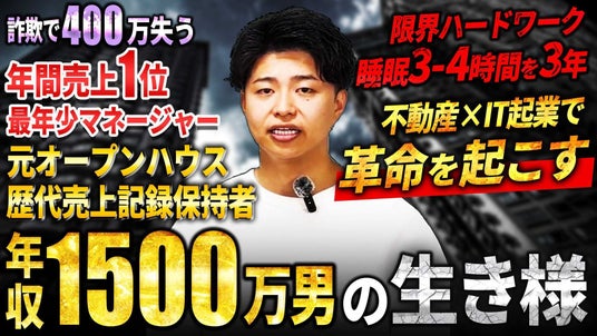 【26歳年収1,500万円】400万円詐欺→オープンハウス年間売上1位→5年で独立!不動産×ITに挑む若手スタートアップCEO