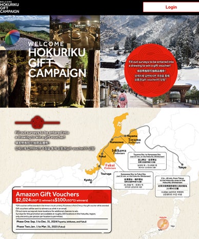 北陸3県の産官学からなる北陸インバウンド観光DX・データコンソーシアム(代表機関:金沢大学先端観光科学研究所)※は,令和6年9月1日よりインバウンド観光の実態把握を目的としたアンケート調査「WELCOME HOKURIKU GIFT CAMPAIGN」を開始しました。