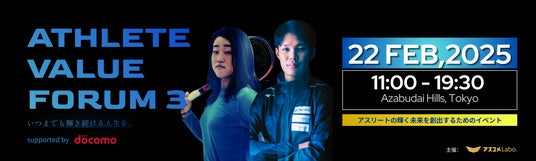 アスユメLabo.(東京都大田区:代表 岡安一正)は、アスリートのキャリア支援を目的としたイベント『ATHLETE VALUE FORUM 3 ~いつまでも輝き続ける人生を~ / Supported by NTTドコモ』を2025年2月22日(土)、株式会社NTTドコモ・ベンチャーズ本社(東京都港区)にて開催いたします。フェンシングの山田優選手(2024パリ五輪銀メダル、2020東京五輪金メダル/男子エペ団体)や全日本テニス選手権女子ダブルスチャンピオンの森崎可南子選手などをアンバサダーに迎え、アスリートの価値を見いだすための講演や意見交換を行います。