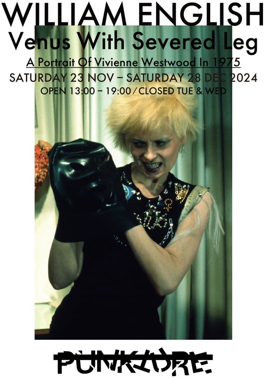 PUNKTURE第七番目の企画展はイギリス人女性映像作家、写真家、ウィリアム・イングリッシュがパンク誕生前夜の1975年に撮影したヴィヴィアン・ウエストウッドの作品を中心に展示販売いたします。パンク・ファッションの生みの親であるヴィヴィアン・ウエストウッド。マルコム・マクラーレンと始めた伝説のショップ ”SEX” で撮影された彼女のリアルな姿を通じ、パンクとはなんなのか、パンク・ファッションとはどんなものなのか、そして数々の伝説をファッション業界に残したヴィヴィアン・ウエストウッドとは。