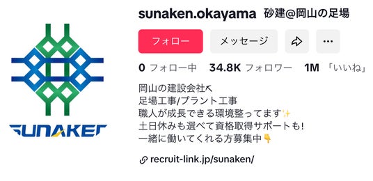 実際に岡山県の建設会社・砂建は、TikTokを活用した採用戦略によって、全国から応募が集まり、20代・30代の若手採用が加速。離職率ゼロという驚異的な成果を生み出しました。