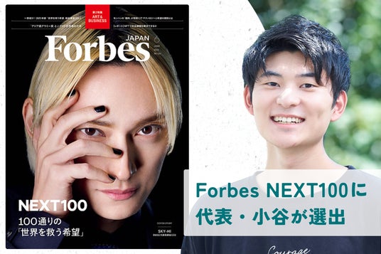 この度は、栄誉あるForbes JAPAN「NEXT 100」に選出いただき、大変光栄です。